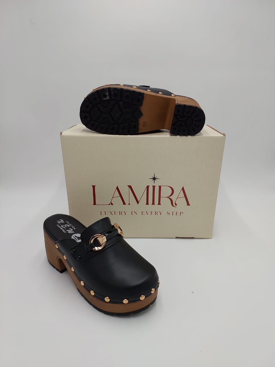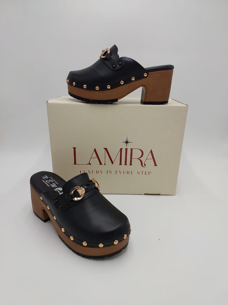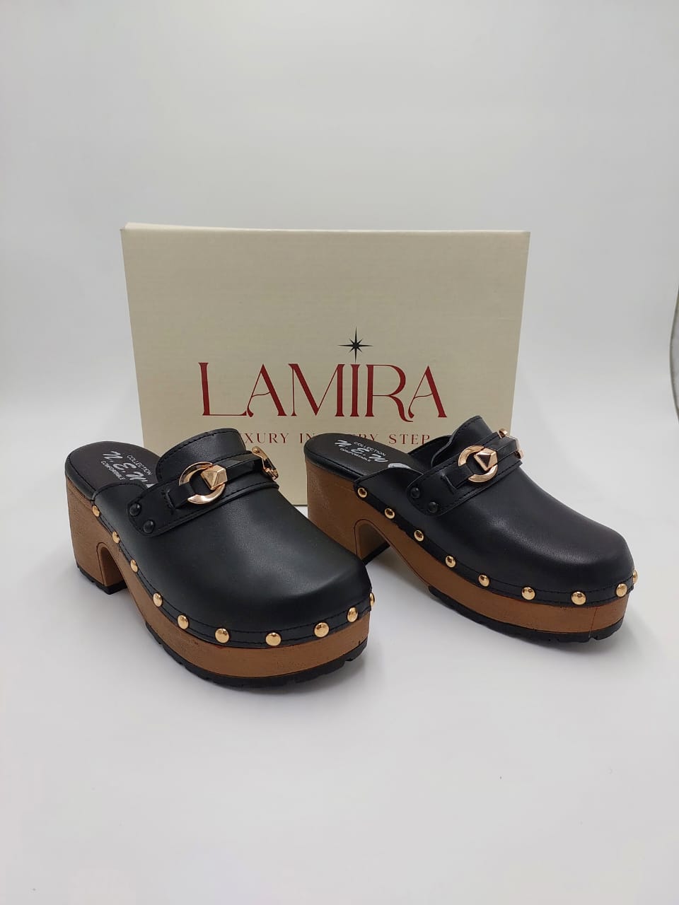 Sabots Lamira Noirs à Talon Bois – Élégance et Caractère Authentique